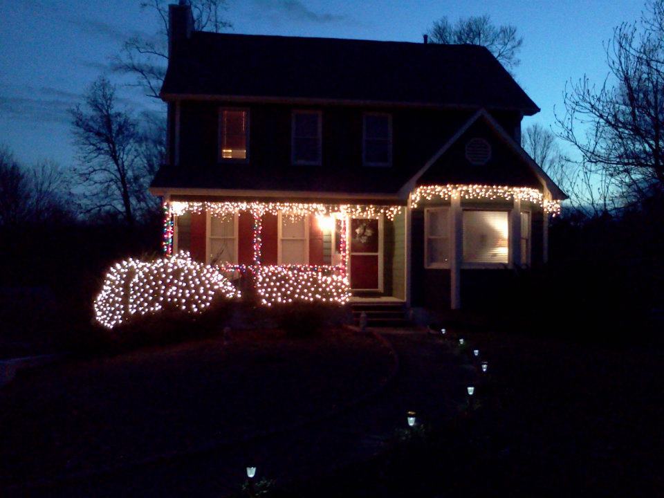 You’ve seen them on houses everywhere this time of year. I remember when they first came out several years ago. I thought they were the prettiest lights I have ever seen and swore that when I had a house of my own, I would put them up. Well, this year I made good on that promise. With the (reluctant) help of my hubby, our house is now looking quite festive. We also decided to add some colored lights on the porch and some lights in the bushes as well.
