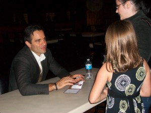 After the show, I was hoping to get an autograph, but wasn’t sure what was going on. I’ve been to stage doors before and usually they are crowded and chaotic. This time, they had a table set up inside where you could go up one at a time to meet Ramin and get him to autograph whatever you wanted. Some people had tons of things and there were a whole bunch of people there waiting. By the time I got up there, it was nearly 11:00 PM. He must have been exhausted after the show, but he was very gracious. I was nervous as can be and my daughter got incredibly shy, but I got my CD booklet signed, which was really cool. 🙂