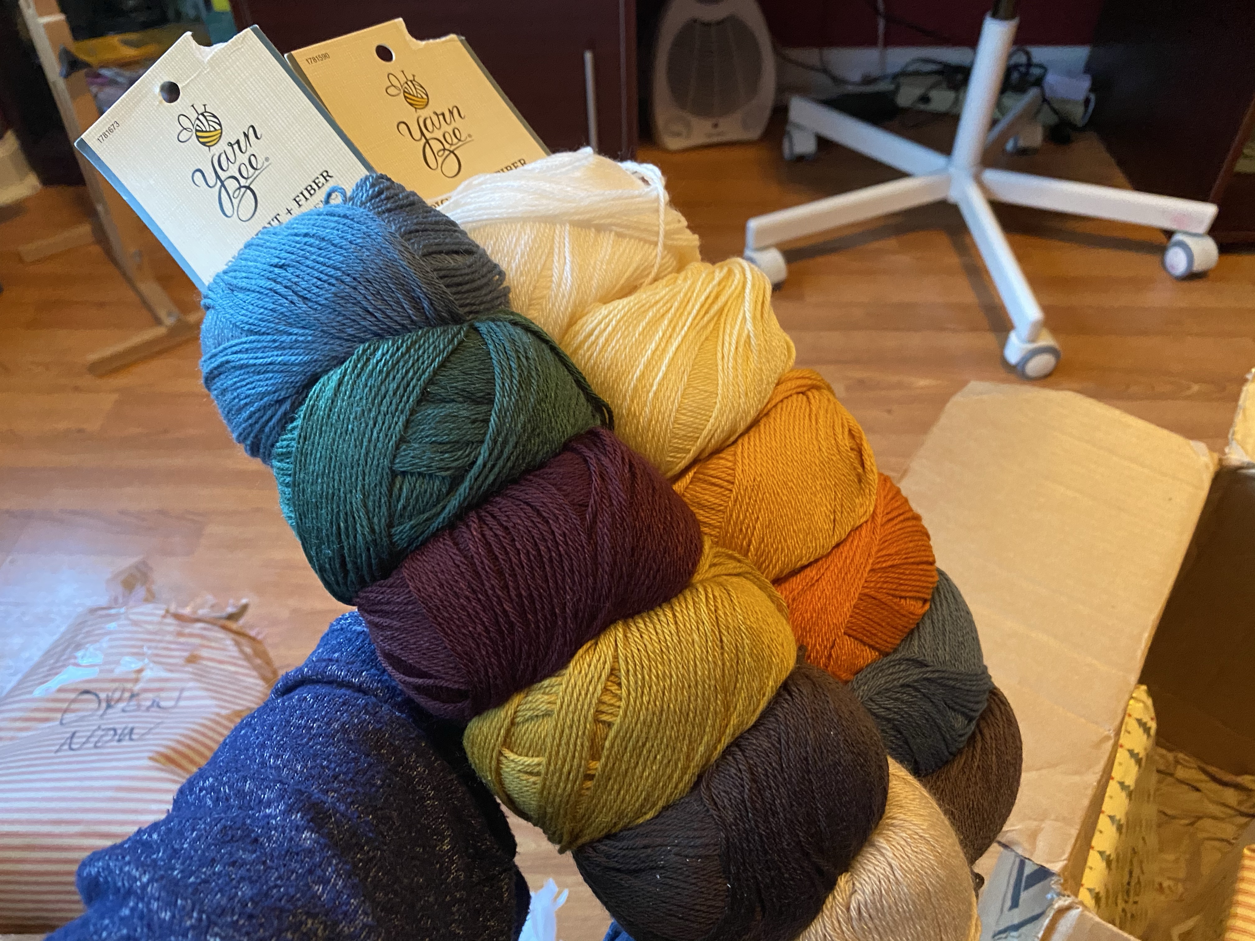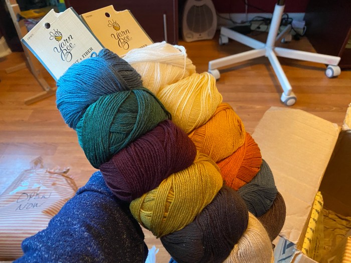 The colors are really pretty and look really nice together. Not sure what I’m going to make with them yet but scarves and hats sound perfect. I love making those, mostly because they are smaller projects that don’t take as much time. š