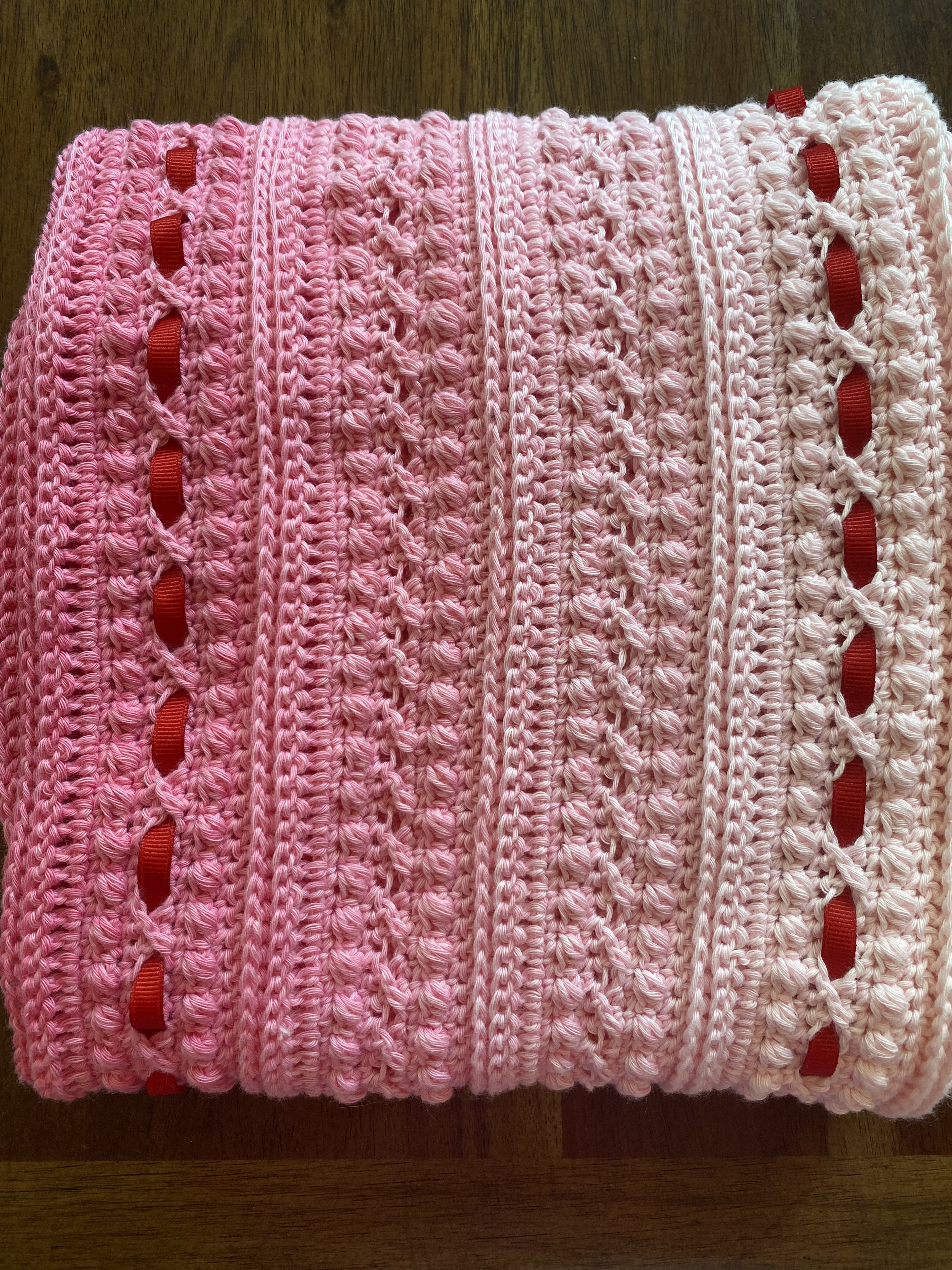 The pattern is taken from the Aran Isle Throw pattern by Yarnspirations (you can find the pattern for free one their website) – it’s meant to be a blanket, but if you stop before it gets too wide, it also works as a beautiful scarf pattern. I did double the length of the pattern though, just so it would be long enough since the yarn itself was fairly thin. The yarn is Cotton Kings Sultan Deluxe in the color Argyle Pink.
