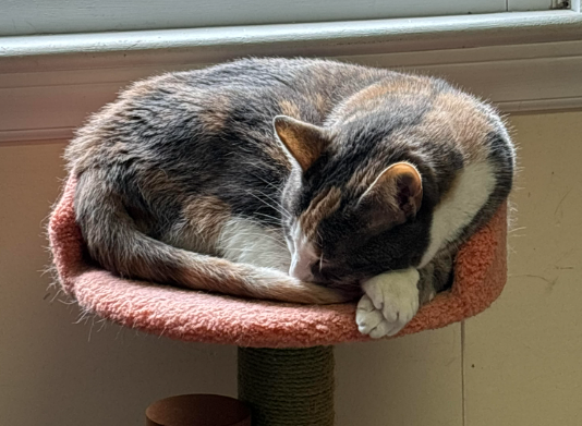 I will leave you with a picture of my cat sleeping on her cat tree. Hope you have a wonderful weekend!