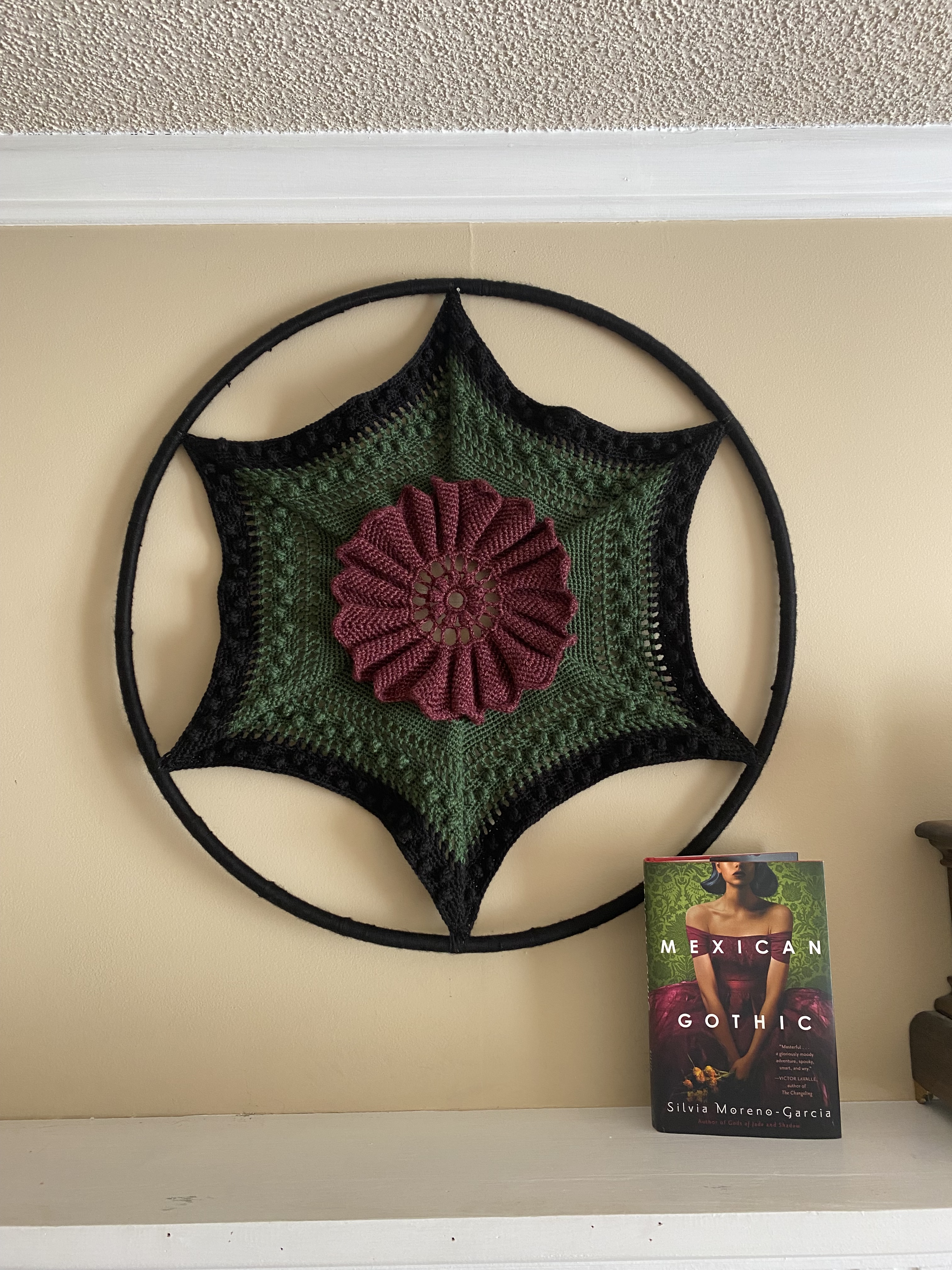 I’ve mentioned before that I crochet and a while back, I decided to do crochet projects that were inspired by some of my favorite book covers. I only did two of these; a scarf inspired by The Grace Year by Kim Liggett and a wall hanging inspired by Mexican Gothic by Silvia Moreno-Garcia.