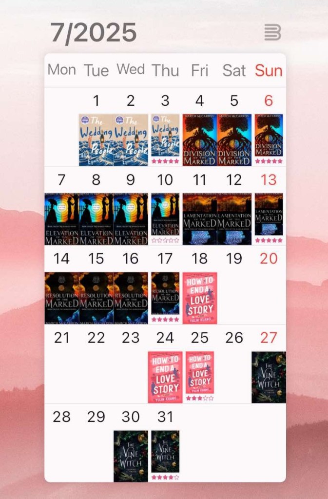 GoodReads Awards Challenge: My goal was to read all fourteen of the winners of 2024’s GoodReads Choice Awards. This month, I read the winner for Best Debut, How to End a Love Story by Yulin Kuang. That makes nine out of fourteen winners read so far this year. Only five to go!