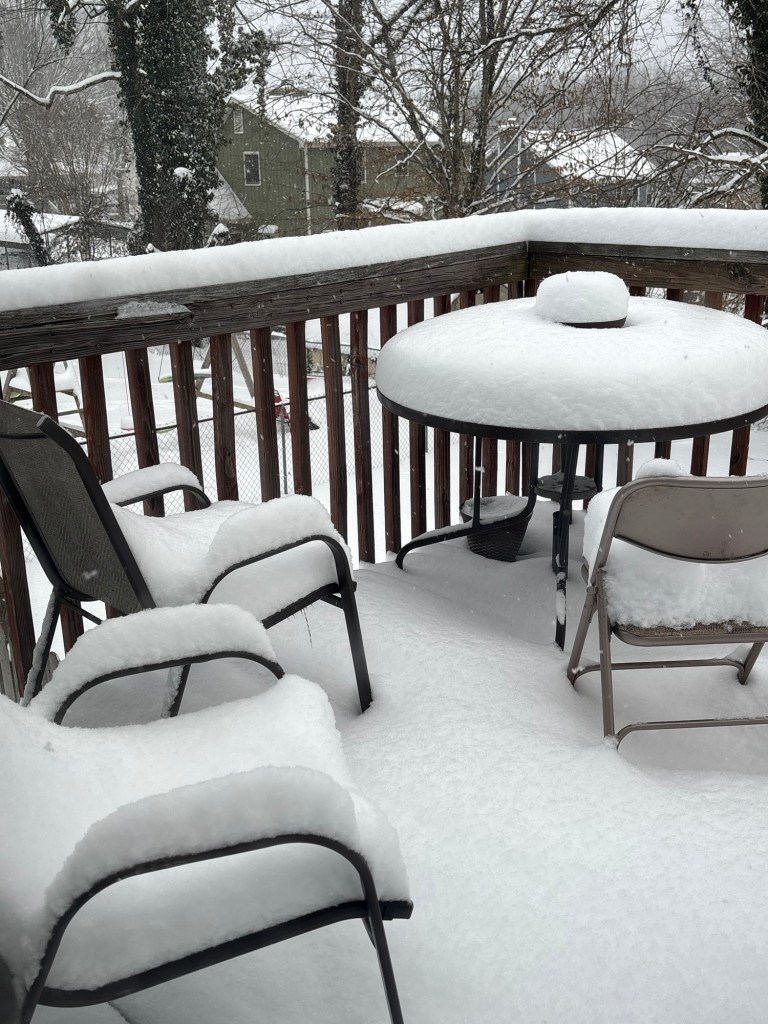 I can’t believe it’s February already. Where does the time go? January left with a bang for us in North Carolina – we got a snow storm! First there was the ice and sleet from the previous weekend, followed by about 6-8 inches of snow this weekend. At least the snow was pretty! Still, that’s a lot of winter weather for us in this neck of the woods. I’ve missed a few days of work here and there, but I’d rather do that and be safe than risk the icy roads. They aren’t always good about clearing them here.