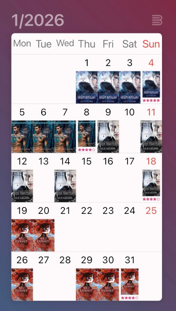 Four books to start off the year. I wanted to do more but, as you can see, there were a LOT of days where I didn’t make time to read. That is something I really want to work on.
